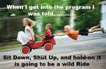 I used to have this wicked fast speedboat. I had a sticker on the console in front of the front passenger seat, it said "sit down, shut up, and hold on". I think its a little saying that has been used before. (They prolly stole the idea from my boat)
