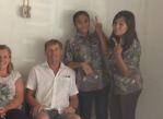 The two girls are travel agents who wanted a photograph with "James Bond", a result of my $1.50 haircut!